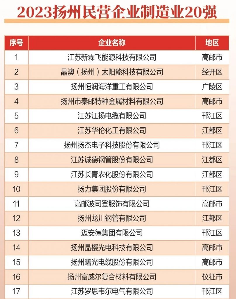 2月18日上午,扬州市新春第一会——全市民营经济高质量发展暨营商环境优化提升大会在扬州会议中心隆重召开。会上,扬力集团荣获了2023“扬州民营企业100强”、“扬州民营企业制造业20强”、“扬州民营企业创新20强”、“扬州突出贡献民营企业”等多项荣誉。