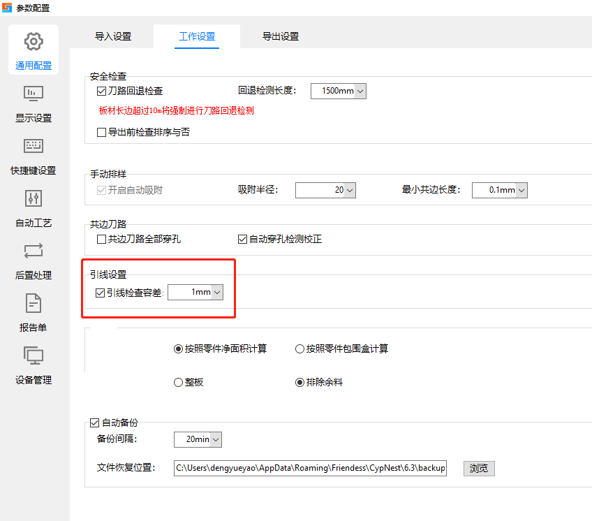 勾选“刀路回退检查”,可以在导出加工文件前对切割头空移路径进行检查。