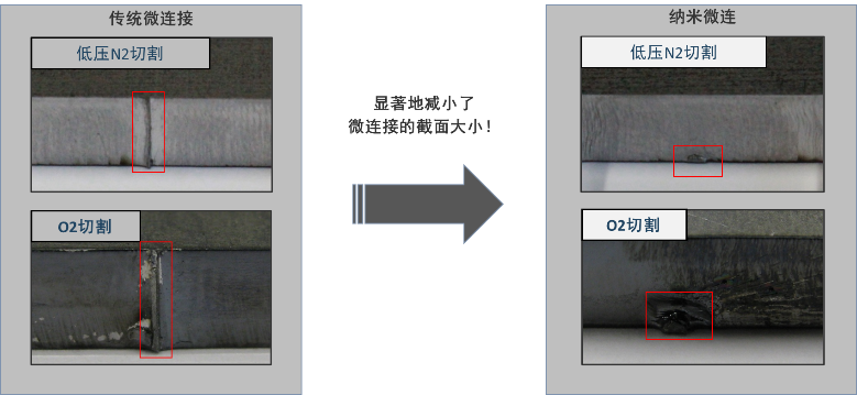 - “纳米微连” 不受切割工艺限制,可同时适用于N2或O2切割,以及完美适配多种通快工艺