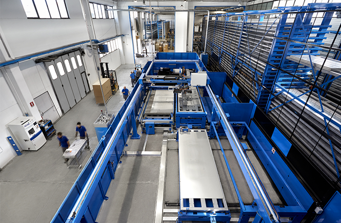 Metaltecnica在公司的生产设施中引入了普玛宝的午夜快车FMS自动化存储解决方案,与集成的Combi Genius 1540冲压/激光切割系统(配备CF 3000光纤激光)以及LSR上料、下料和堆垛机器人相连接。