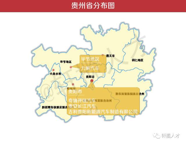 同理可见贵州,主机厂分布很少,并且都是以生产制造为中心的。这主要是因为贵州地处中国西南腹地,与重庆、四川、湖南、云南、广西接壤,尽管贵州省会贵阳是中国西南铁路枢纽,但由于经济的相对不发达也导致贵州不太会成为大家择业的首选地,也正因为如此,在贵州的汽车主机厂也相应的比较少。