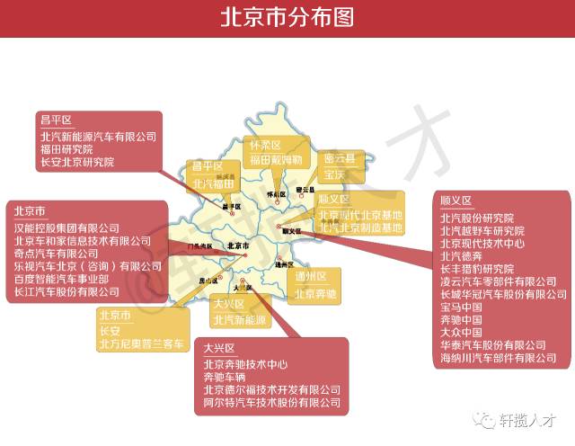 由图可见,北京的车企主机厂分布较多较广,并且以设计研发为主。主要就是北汽集团了,旗下涵盖北京奔驰、北京汽车制造厂、北京现代、北汽福田、北京汽车。