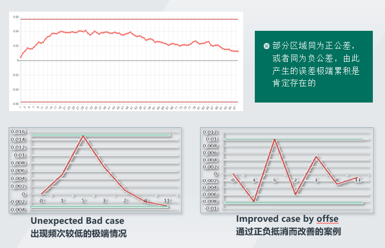 • 如果采用2米齿条,一共需要6根2米齿条,同时产生5个接缝, 那么此时极端总误差就会剧降为389μm,只有1米齿条组的一半