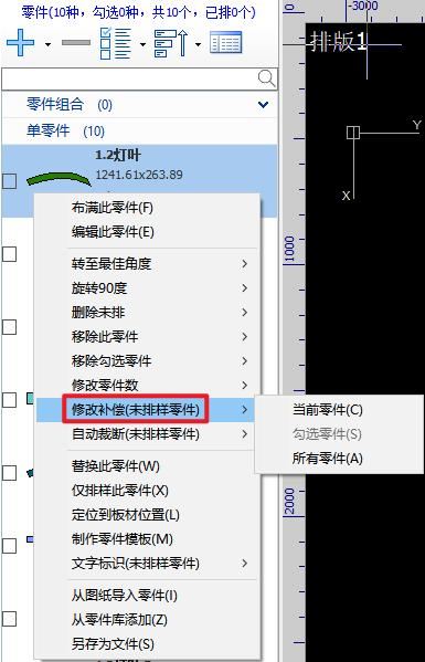忘记设置补偿时,允许在排样界面给未排样的零件设置补偿,也支持批量操作。