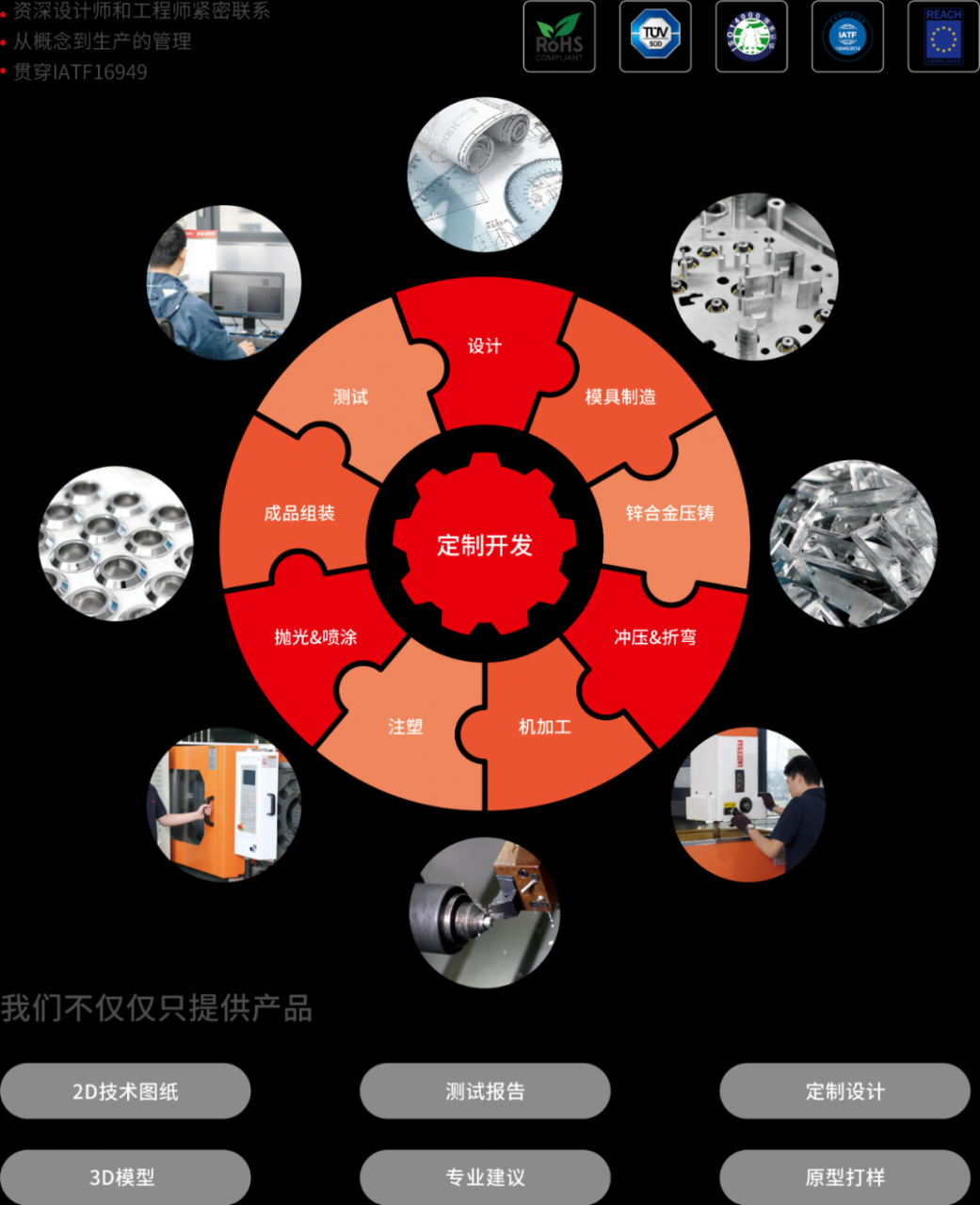 我们不仅仅只提供产品,还可提供2D技术图纸、测试报告、定制设计、3D模型、专业建议、原型打样,为您提供更安心的工业锁闭系统解决方案。