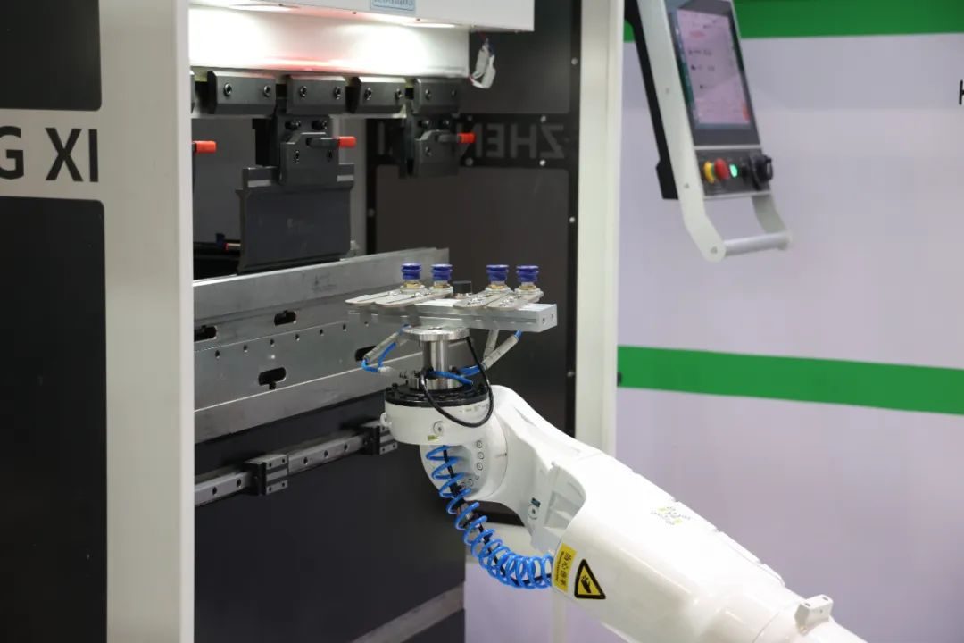 正西公司自主研发的自动化折弯机设计新颖独特,充满科技感,吸引了众多参观者的目光。