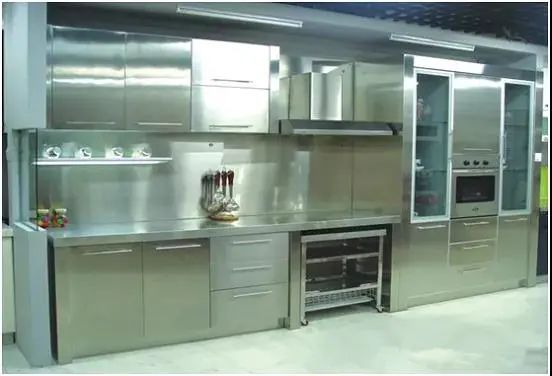 以前大多是饭店、酒楼、酒店的厨房采用不锈钢橱柜,近几年,许多家庭也转向了不锈钢橱柜了。有些人认为木制品有点上档次,而不锈钢显得冷冰冰,于大厅和房间而言可能成立,但是在厨房,应该讲究更实用。不锈钢橱柜比木质厨柜具有更多优点:比如不锈钢环保,没有甲醛,解决了板材的环保问题;另外,厨房是个长期潮湿的地方,刨花板、中纤板、夹板等都会受潮,时间长了会发霉、膨胀等问题。不锈钢不怕水浸泡,还能防火。而且不锈钢表面很光滑,不怕刮,附积的油烟很易清洁干净,长久使用仍然像新的一样。