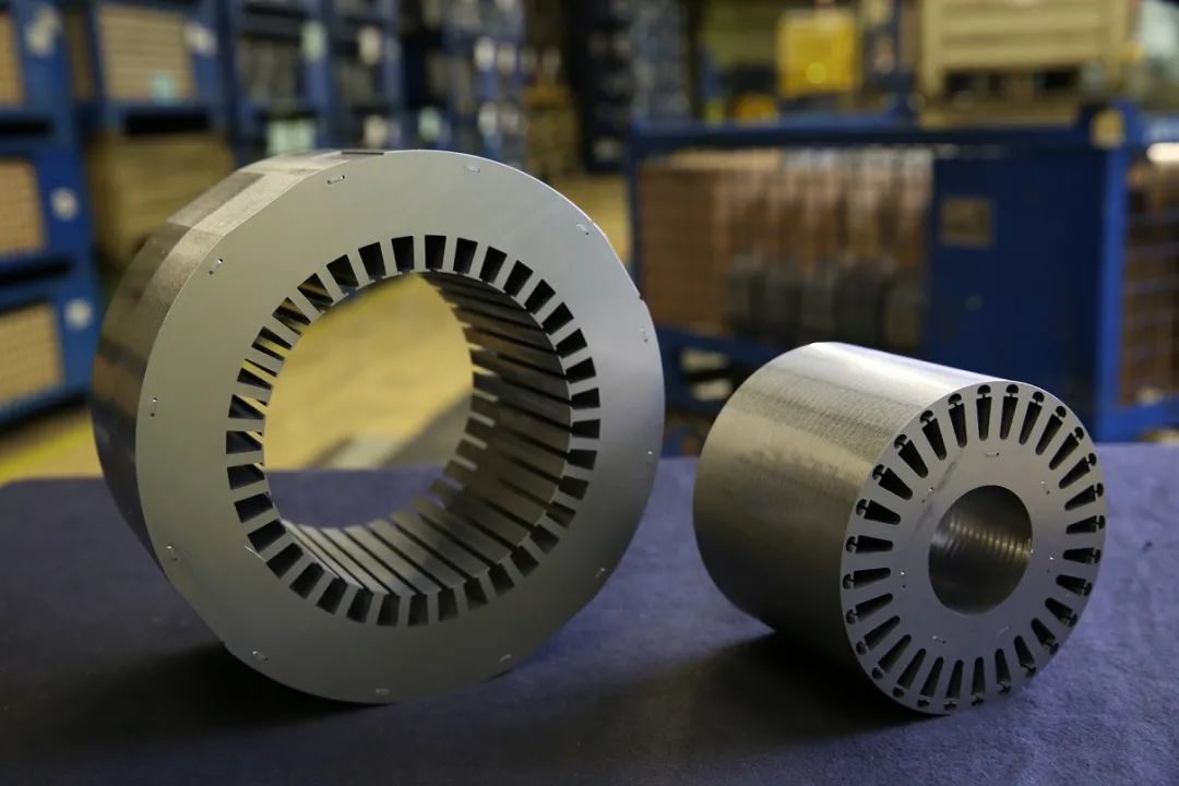 从卷材冲压出定转子叠片后将它们叠在一起形成电机铁芯