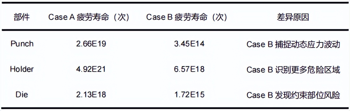 • Case B 评估寿命更保守:因考虑实际载荷波动,结果更接近真实失效风险。