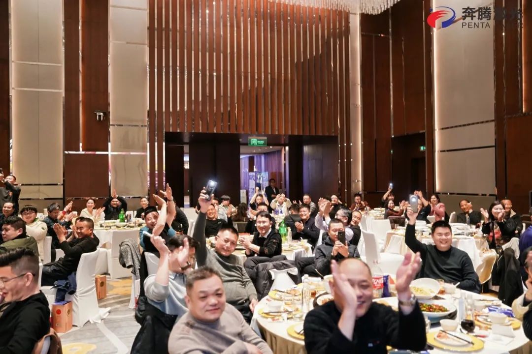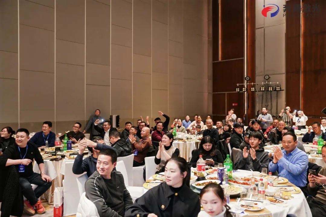 在热烈的掌声中,奔腾激光集团国内销售总监靳艳红登台致祝酒词。她回顾了奔腾激光近几年来取得的成就,感谢客户们多年来给予的支持和信赖。靳总表示:“志合者不以山海为限,未来奔腾激光将继续携手大家砥砺奋进于新征程。”她的致辞慷慨激昂,点燃了全场嘉宾的热情,随后在场所有嘉宾一起举杯同庆这一重要时刻。