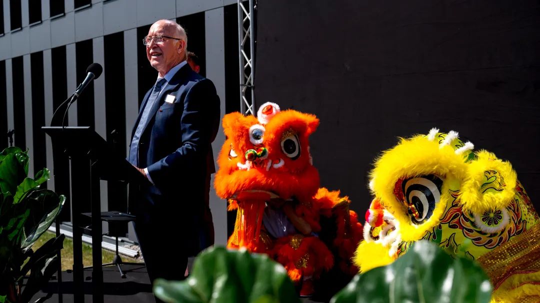 巴伐利亚工商会副主席Schuller教授受邀上台致辞:“创鑫激光在光纤激光器领域的技术实力令人印象深刻。作为巴伐利亚州企业的重要合作伙伴,巴伐利亚工商会拥有广泛的本地企业网络,期待在激光技术领域更进一步技术交流和务实合作。”她在致辞中强调,她今天特意穿上中国红的裙子对本次庆典表示热烈祝贺!