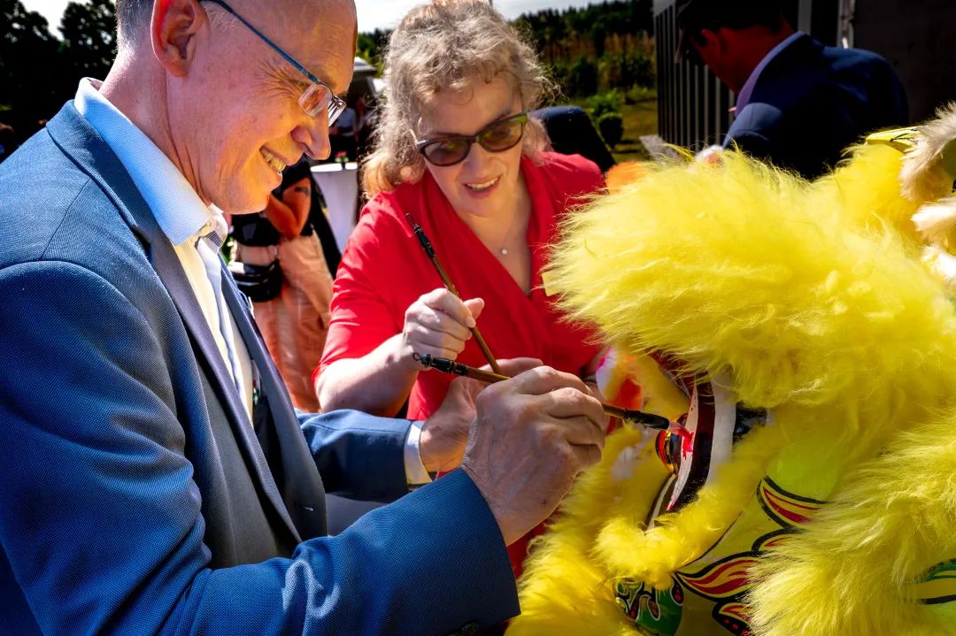 ▲巴伐利亚州经济部长Wittmann博士与巴伐利亚工商会副主席Schuller教授为醒狮点睛