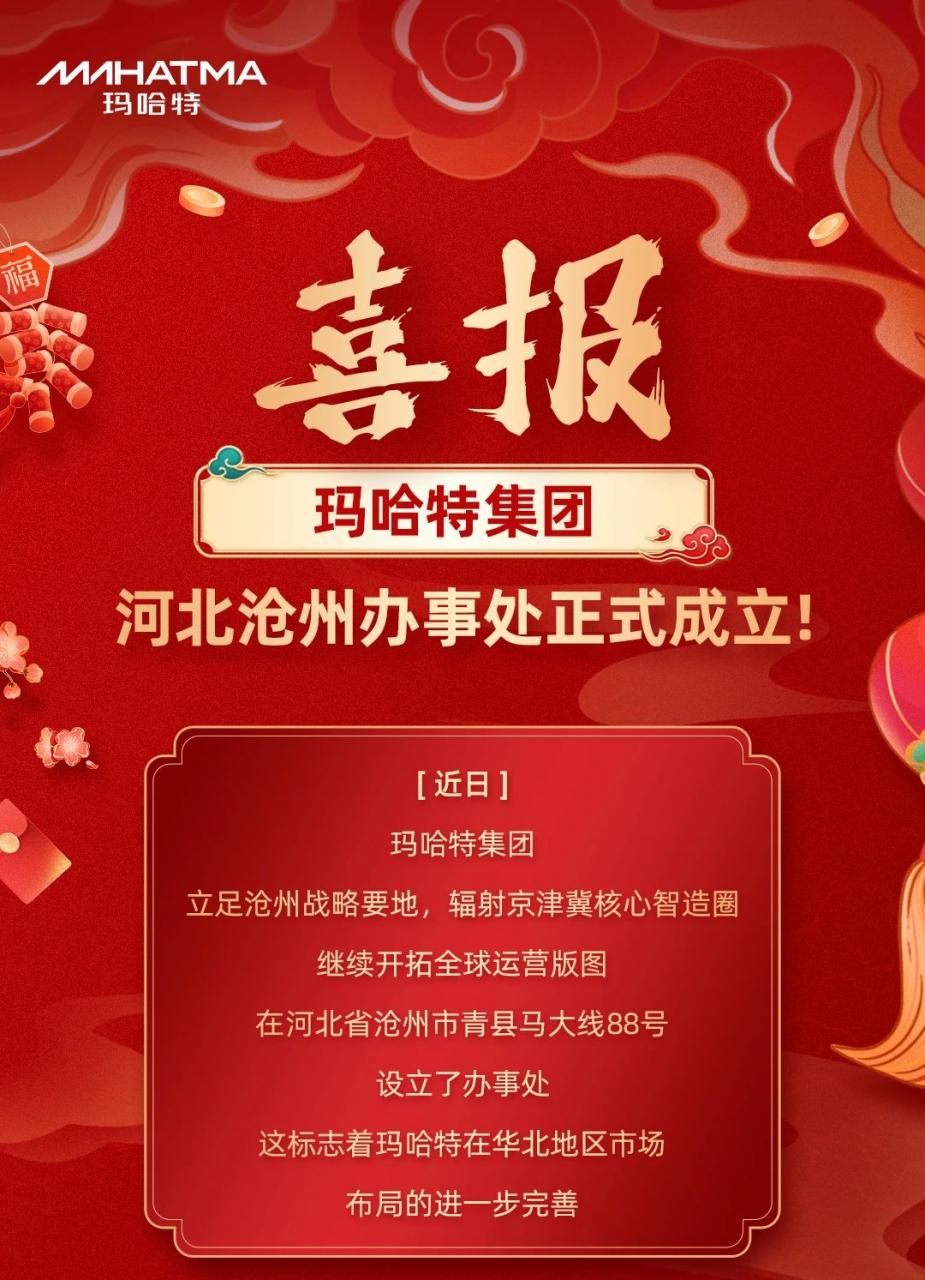 喜报!玛哈特矫平机、产线河北沧州办事处正式成立