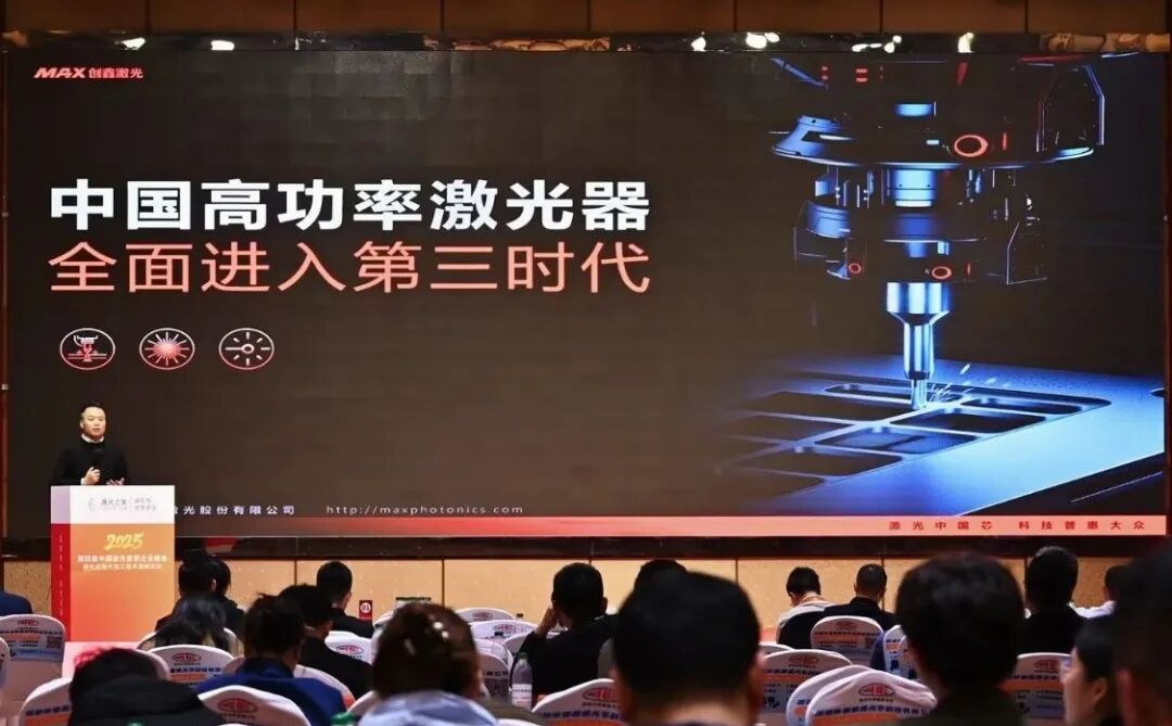 峰会现场,创鑫激光市场与品牌负责人曾剑锋发表了《中国高功率光纤激光器迈进第三时代》的主题演讲。系统性地阐述了中国激光行业从“技术突破”到“万瓦普及”,再到如今“生态赋能”的三大发展阶段,不仅描绘了高功率激光技术向智能化、平台化演进的全新图景,更展现了创鑫激光作为行业领军者的深刻洞察与前瞻布局。