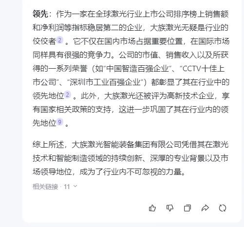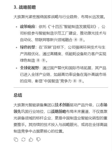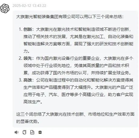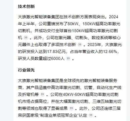 你眼中的大族激光智能装备集团有限公司是什么样的?请用三个词总结,并说明理由。