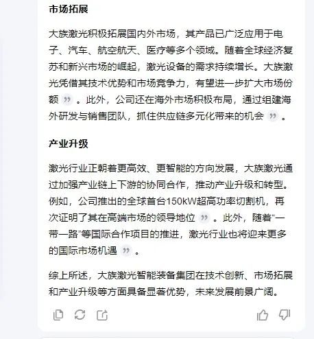 结合激光行业未来发展趋势,你认为大族激光智能装备集团的发展前景如何?请用三个关键词概括,并说明理由。