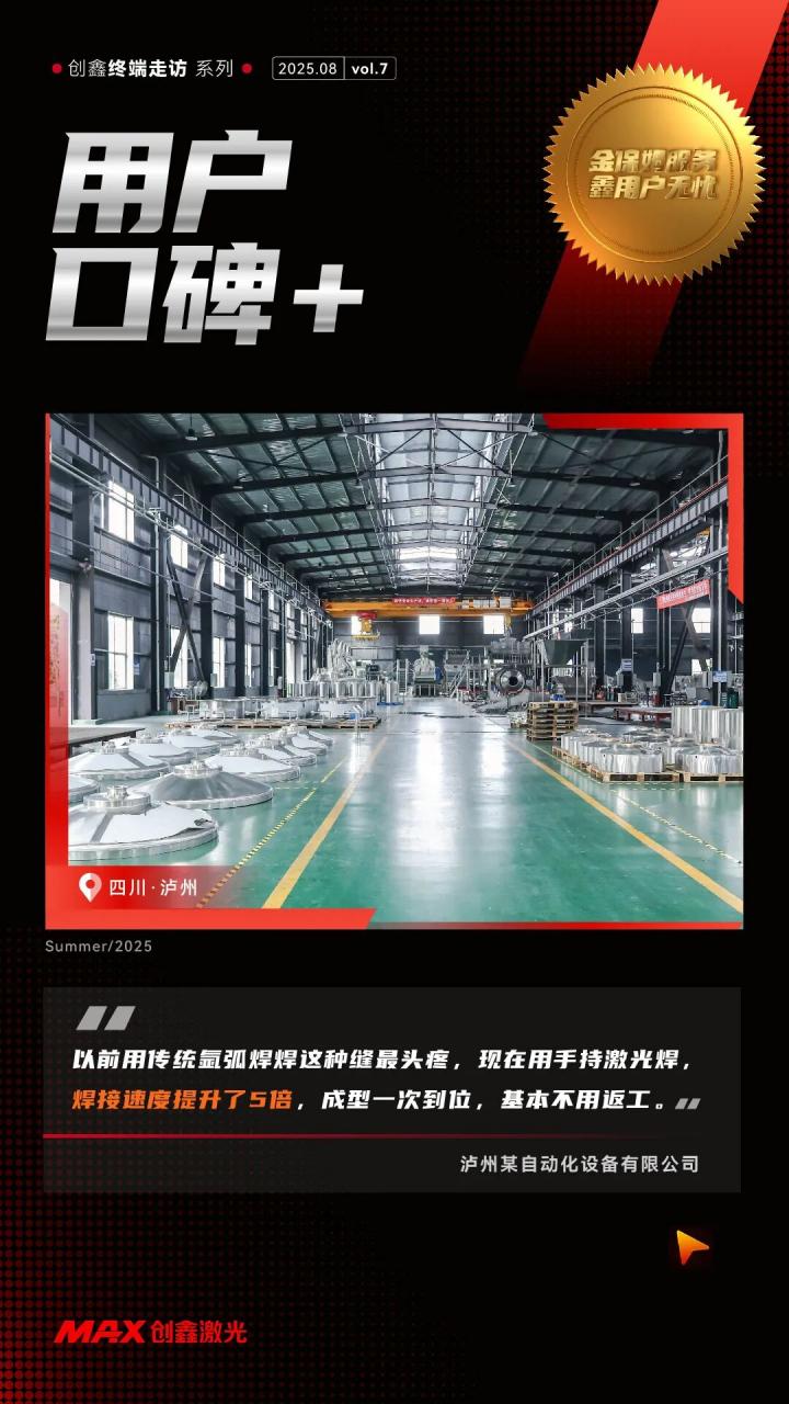 在弥漫着千年酒香的泸州,创鑫激光正通过技术赋能与业务合作,深入酿酒制造生产环节。手持激光焊不再只是冰冷的工具,更是传统酿造工艺与现代尖端科技的桥梁,精准“焊”卫着每一滴泸州美酒的品质与传承,助力泸州制造在新时代焕发出更璀璨的光芒。