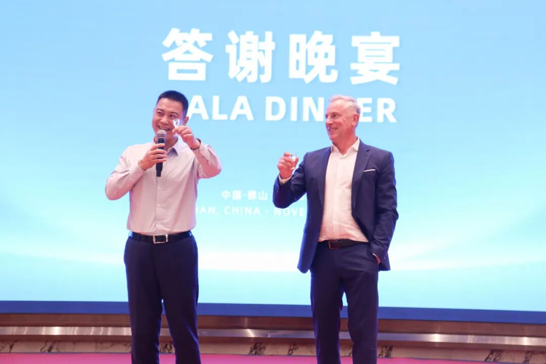 当晚,“新程肇启・万里同光” 答谢晚宴如期举行。瑞士百超集团总裁 Domenico 先生与迪能激光全球 CEO 游松博士共同登台致祝酒词,向所有嘉宾致以诚挚的祝福。晚宴现场,精彩的表演轮番上演,为本次开业庆典画上了圆满的句号。