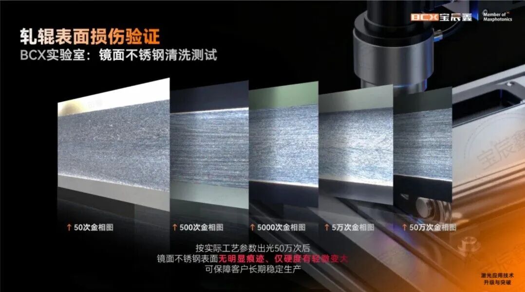 经50万次脉冲清洗测试(在BCX实验室使用镜面不锈钢模拟客户生产工艺),镜面不锈钢表面无明显痕迹、仅硬度有轻微变大,可保障客户长期稳定生产。