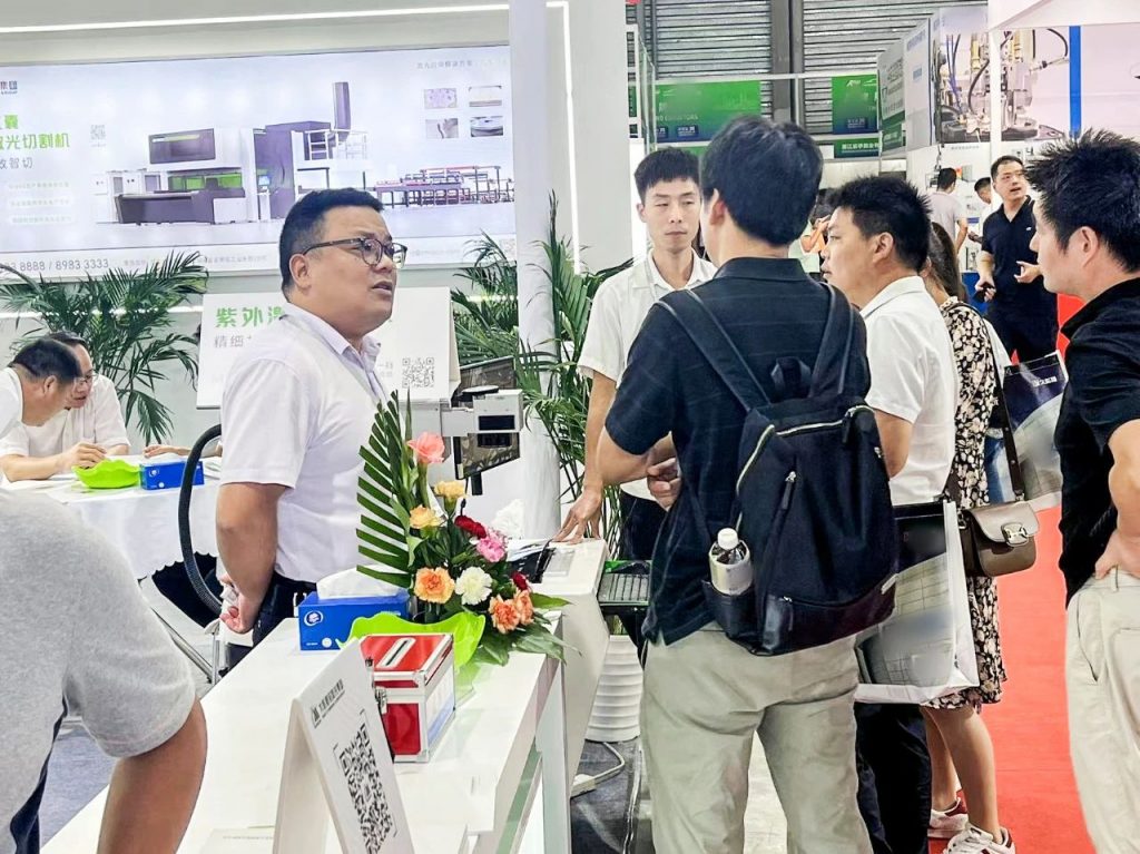 开展当天,粤铭激光集团三维五轴激光切割装备的高光亮相,吸引了众多客商的驻足交流,成为全场瞩目的焦点。该装备采用三维五轴数控系统,可360°无限旋转,±135°左右摆动,可实现复杂曲面件、3D件、异形件等的高速切割,适用于汽车制造领域非金属工件的水口切割、快速修边、高速穿孔等加工。