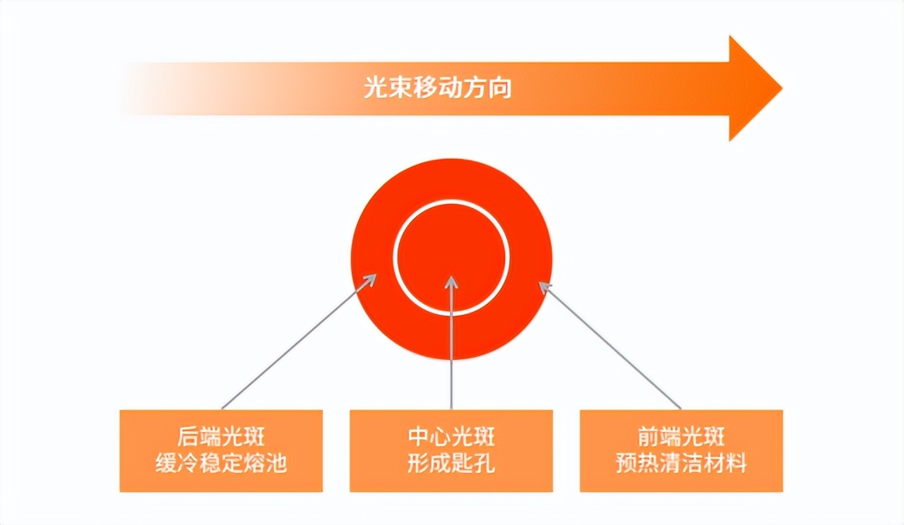 双光束(环形光斑)激光器采用独特的环形光斑设计,实现“内环聚能、外环补能”的协同作用:内环凭借高功率密度作用于工件,快速生成匙孔,确保足够的焊接熔深;外环则为熔池补充能量,增大焊缝宽度,同时延长匙孔闭合时间,帮助熔池内气体充分逸出,大幅降低焊缝气孔率,从根源上解决飞溅、变形等问题。