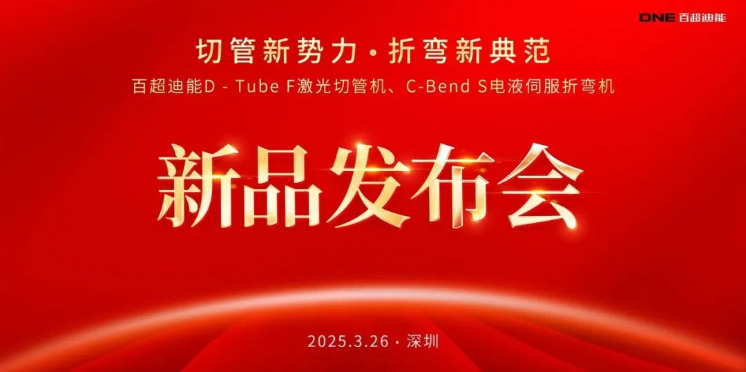 百超迪能展位号4-B01)的“切管新势力,折弯新典范”新品上市发布会吸睛无数,D-Tube F激光切管机和C-Bend S电液伺服折弯机两大新品尽展“C位”风采。