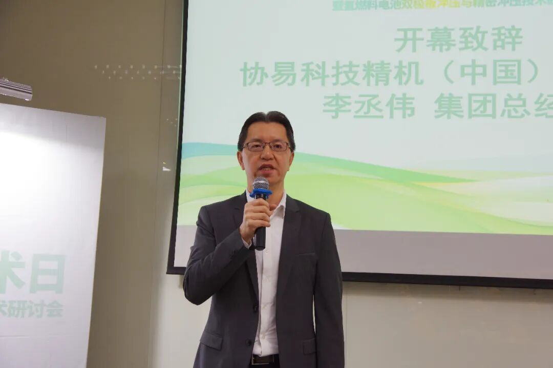 会上,协易机械工业股份有限公司总经理李丞伟先生、协易科技精机(中国)有限公司总经理洪蕙炯女士分别致开幕词,对与会嘉宾表示热烈欢迎,并介绍协易在氢能装备、精密冲压领域的技术积累与战略布局,助力氢能产业规模化、低成本制造升级。