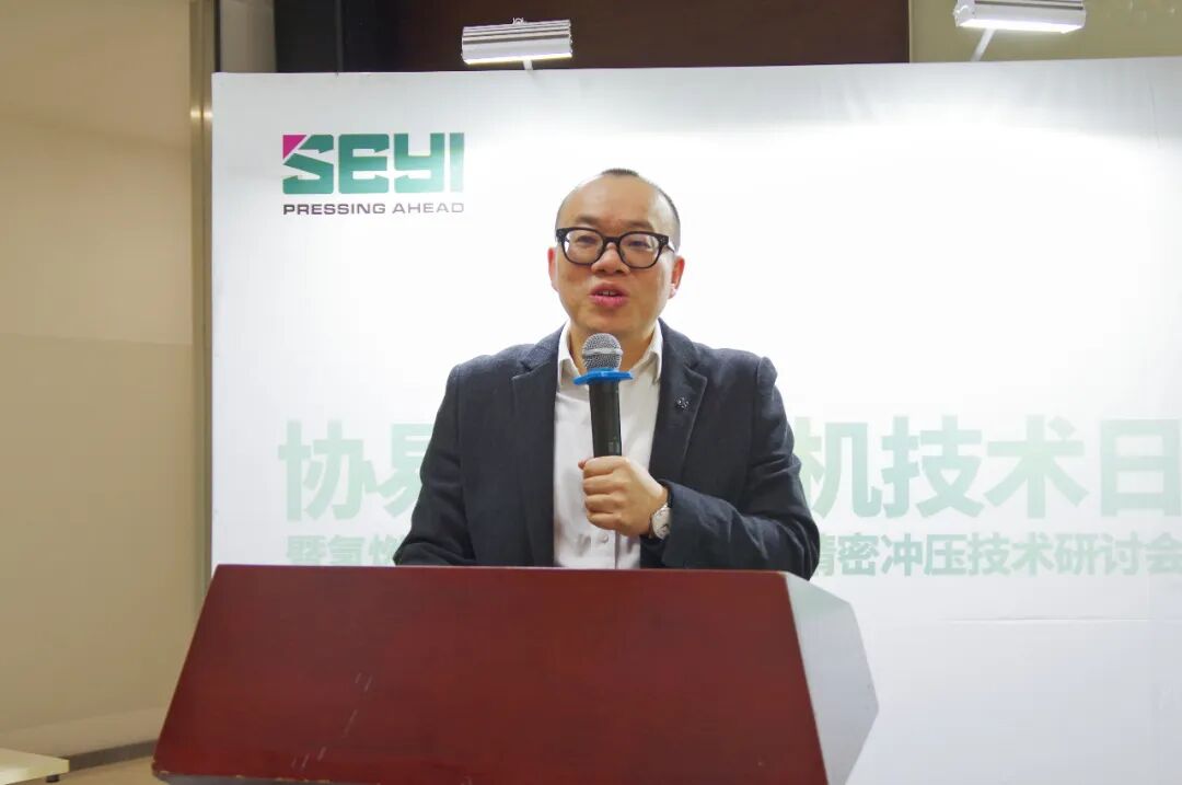林明旸协理详细介绍SDK1 系列伺服冲床专为高精度、高刚性板锻成形设计,是氢燃料电池金属双极板精密冲压的理想装备。