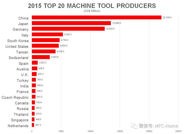 图1 Gardner2015年的世界前二十名机床生产国的排名图2 Gardner2015年的世界前二十名机床消费国的排名