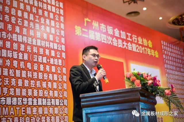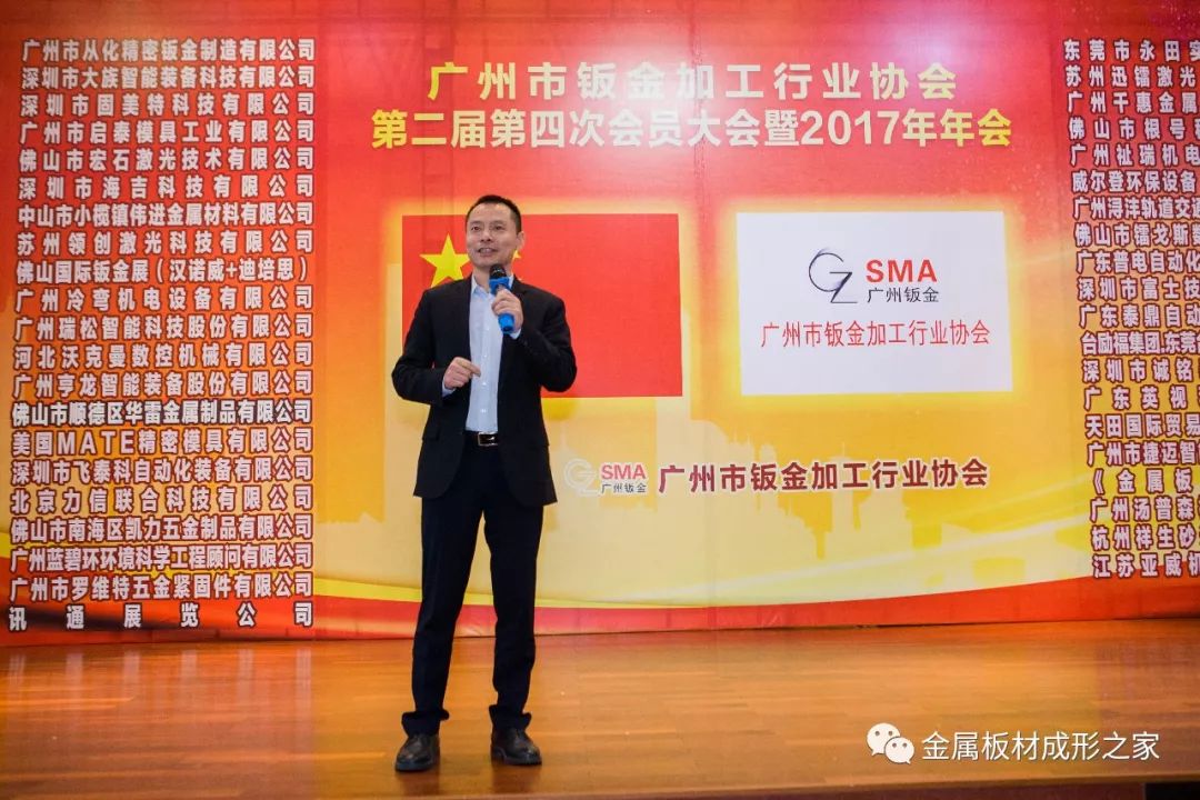广州市钣金加工行业协会秘书长许昊对2017 年工作进行了总结,2017 年参加了众多行业会议(MFC廊坊金属板材会议、萨瓦尼尼第 200 台折弯中心发布仪式、欧美钣金技术交流会、MWCS第十六届钣金加工智造技术交流会、MFC 深拉伸会议),协会还探讨了助推企业走出去的活动, 组织了一些技术培训。