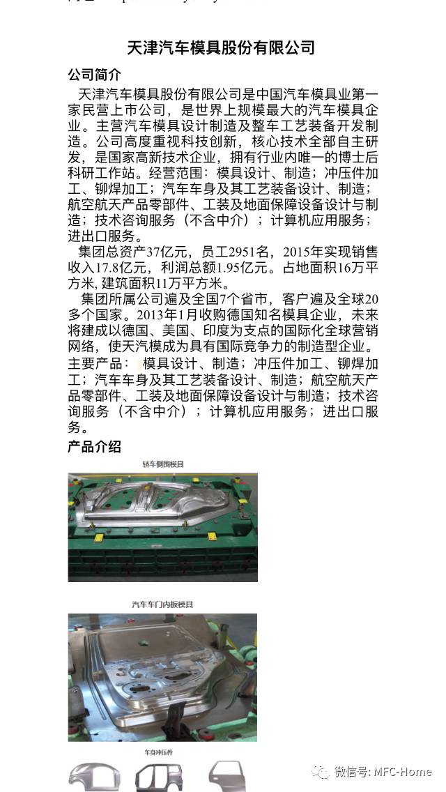 点击阅读原文,填写个人信息,可以在留言框里索要详细的100多家冲压模具的资料文件,已经填写过的信息的,直接给liumingxing@mfc-china.org发邮件索取。
